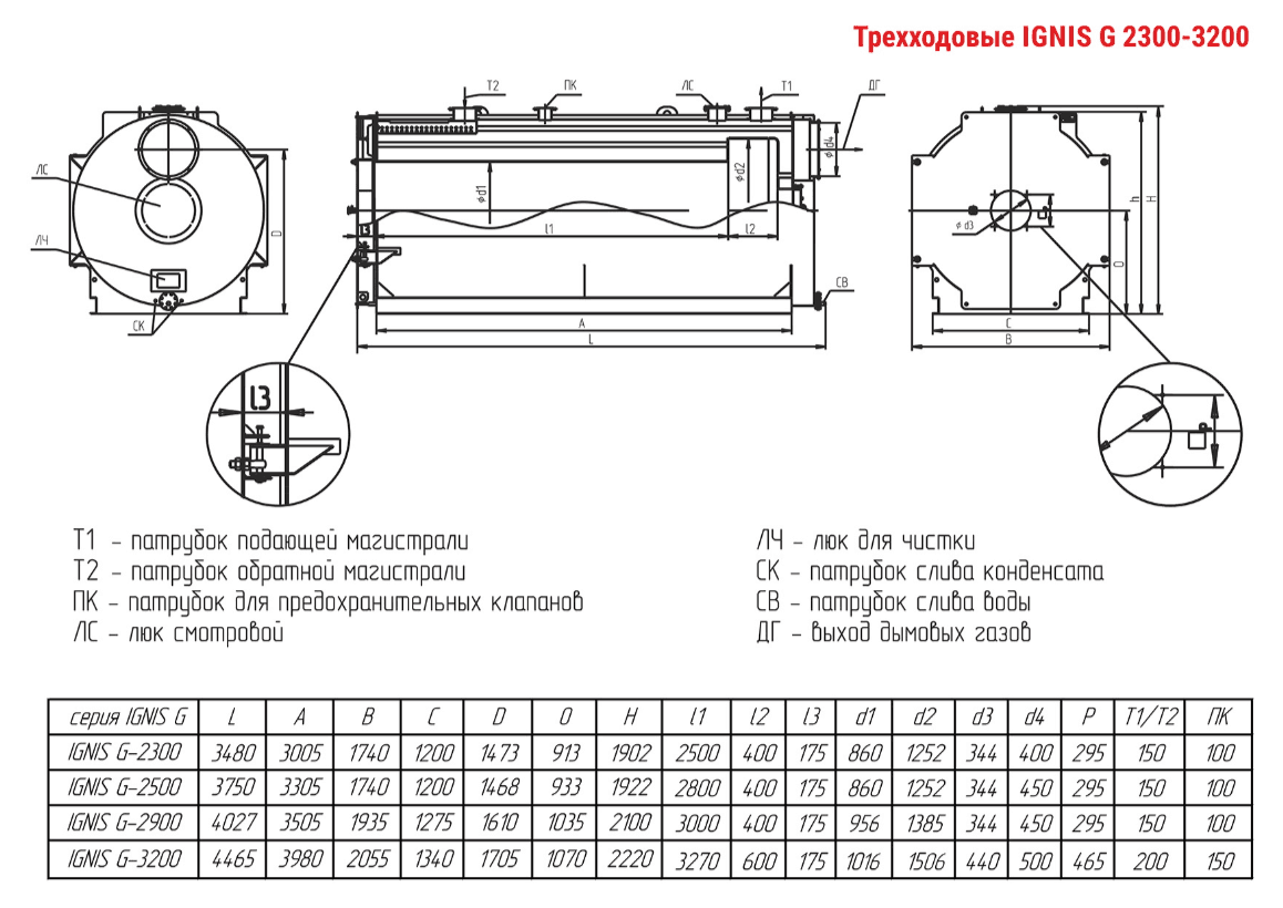 Технические характеристики водогрейного трёхходового котла ARCUS IGNIS G-2300