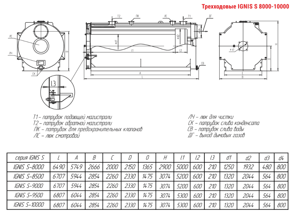 Технические характеристики водогрейного трёхходового котла ARCUS IGNIS S-10000